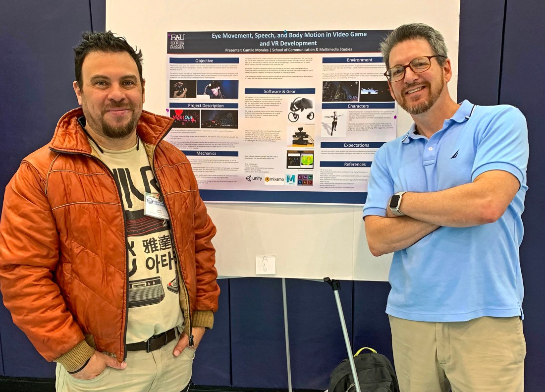 Topher Maraffi with MFA student Camilo Morales at the FAU Grad Research Day 2019.