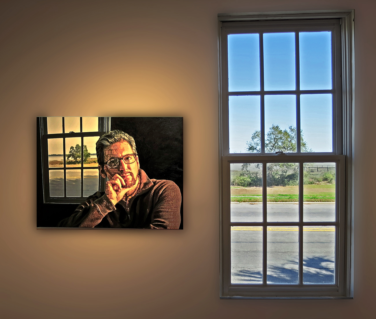 Self portrait in Sea Island Center gallery for USCB Film & Digital Media Exhibition, 2018.