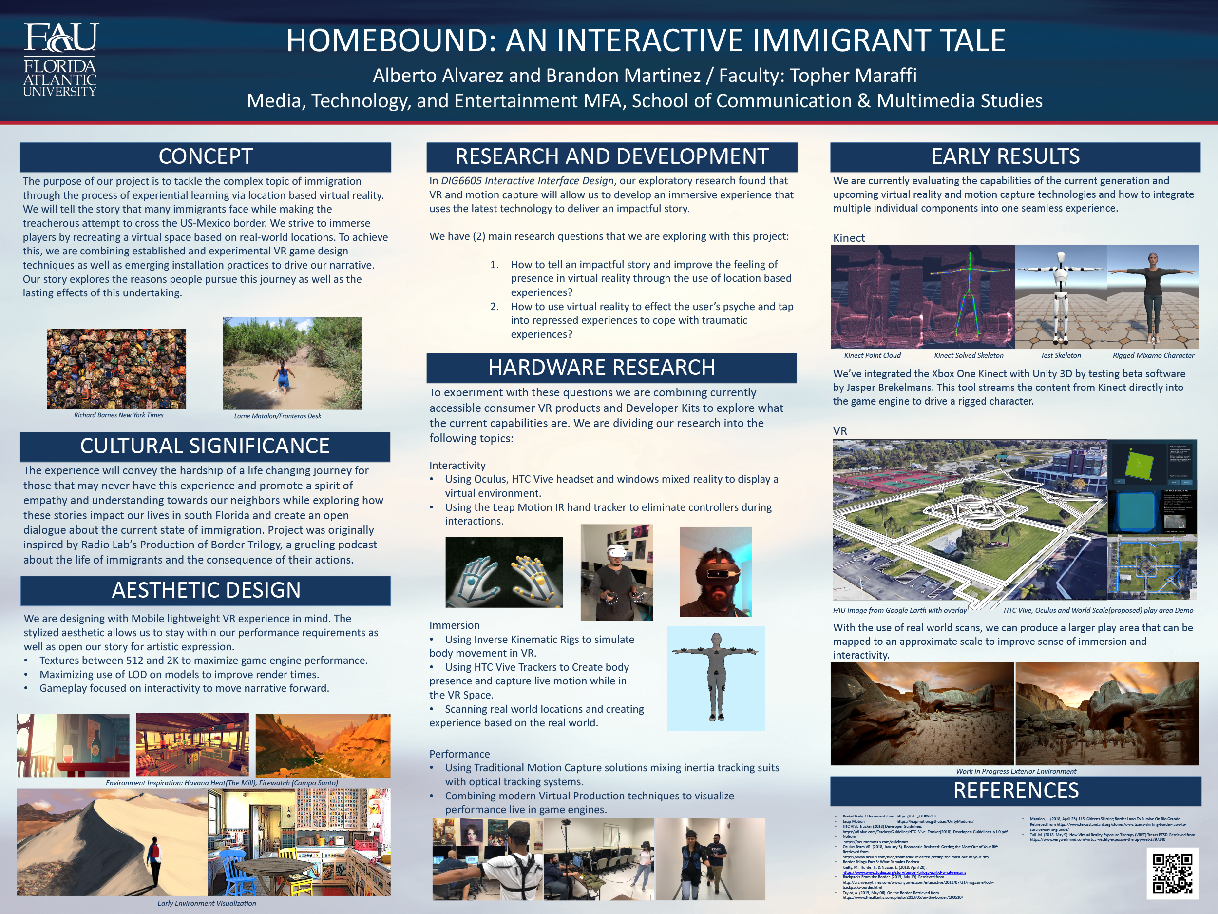 Spring 2020 Media, Technology, and Entertainment graduate students Alberto Alvarez and Brandon Martinez successfully defended their MFA thesis Homebound: An Immersive Immigrant Tale, which featured an interactive narrative where the player determines the fate of an undocumented immigrant in US Border Patrol custody: