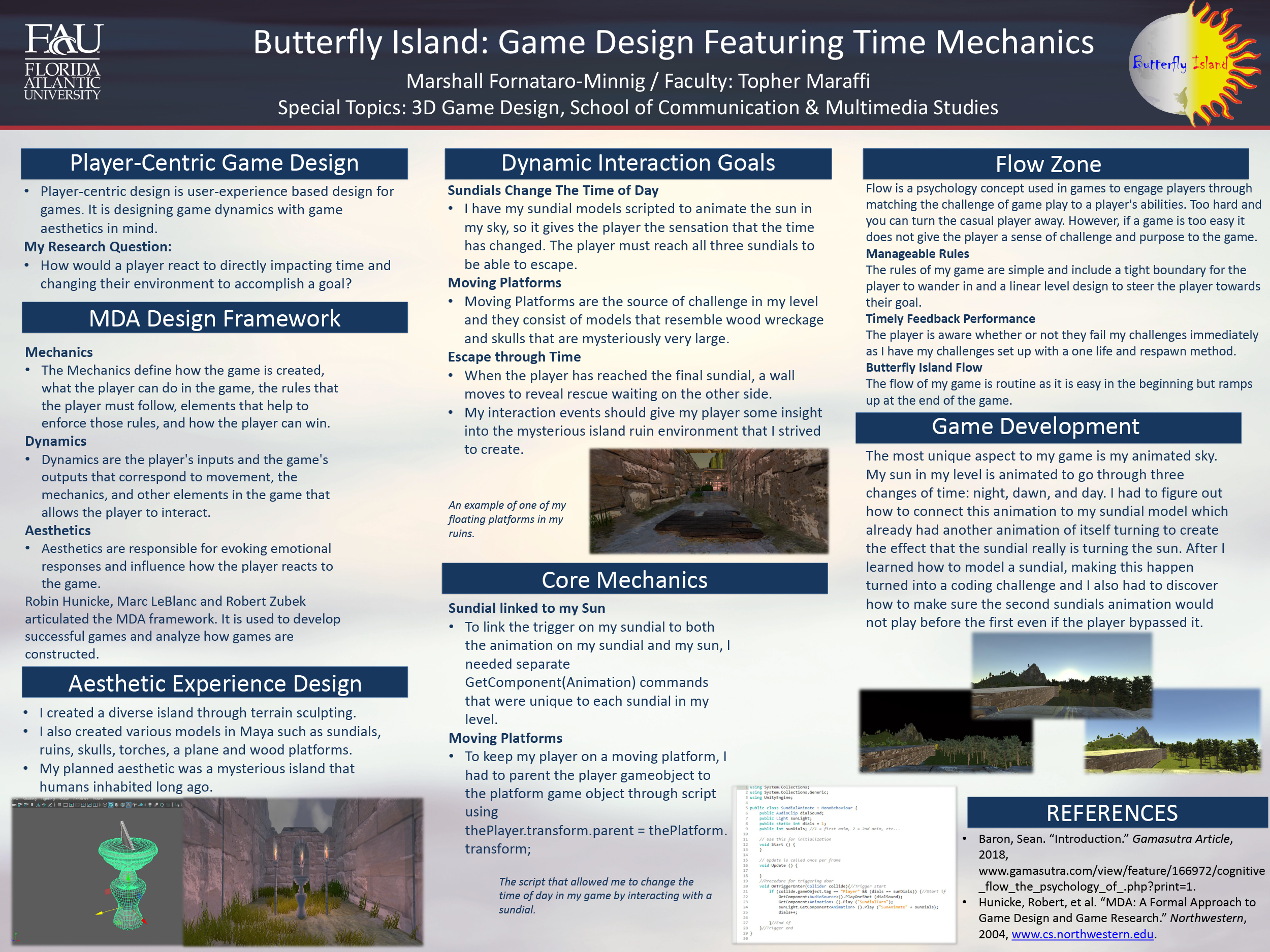 Students also created research posters, and Marshall Fornataro-Minnig showed a demo of his game at FAU’s Undergraduate Research Day:
