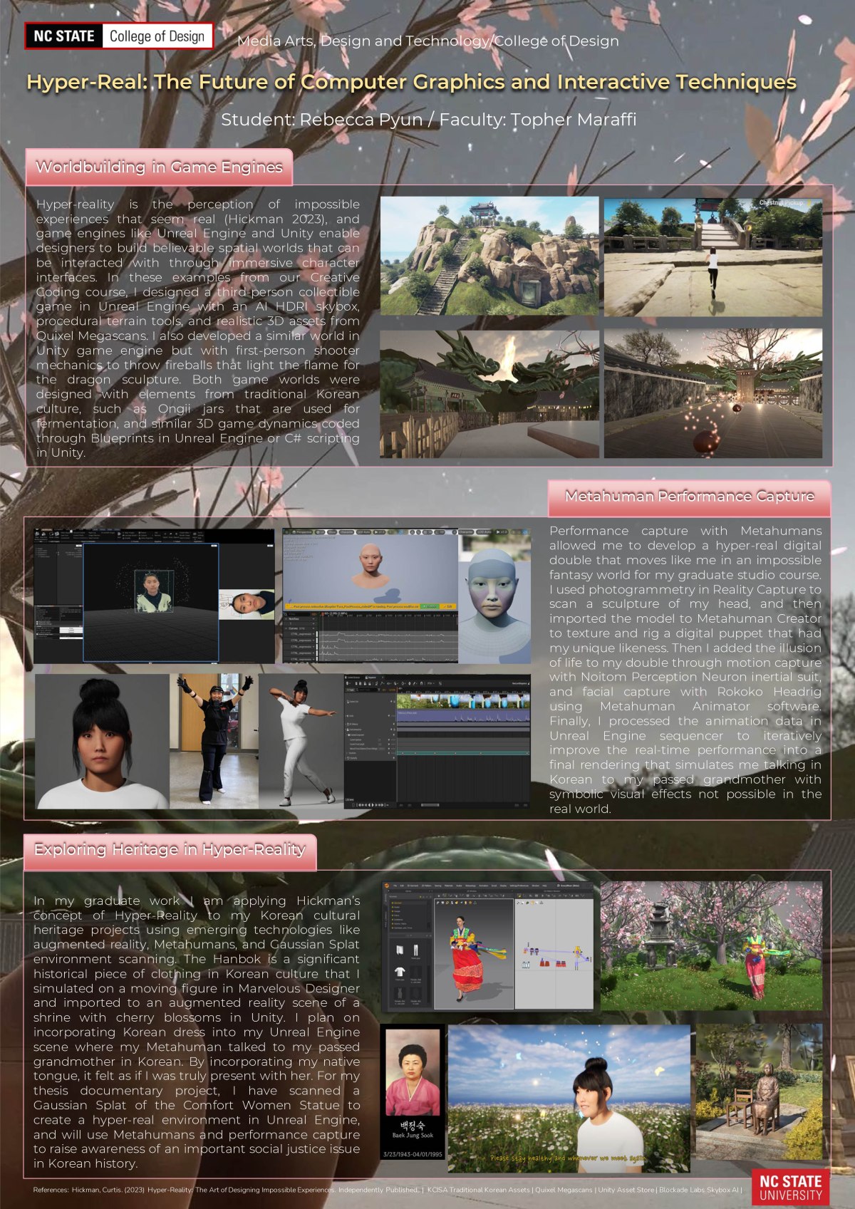 Here is a poster of her development process for this project and others that explored her Korean culture using concepts of hyper-reality, game design, and digital heritage: