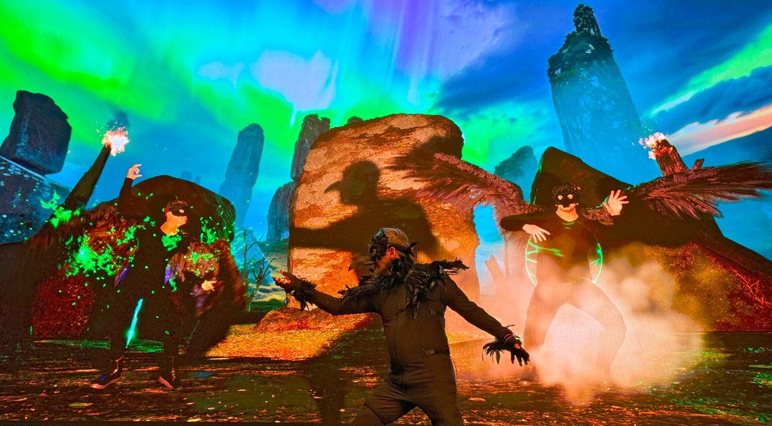 The Metahuman puppetry illusions will be enhanced by using virtual lights and VFX to drive DMX image-based lighting and practical effects in the virtual production volume, that will further blur the aesthetic separation between the real stage and the Unreal Engine scene in the LED wall.